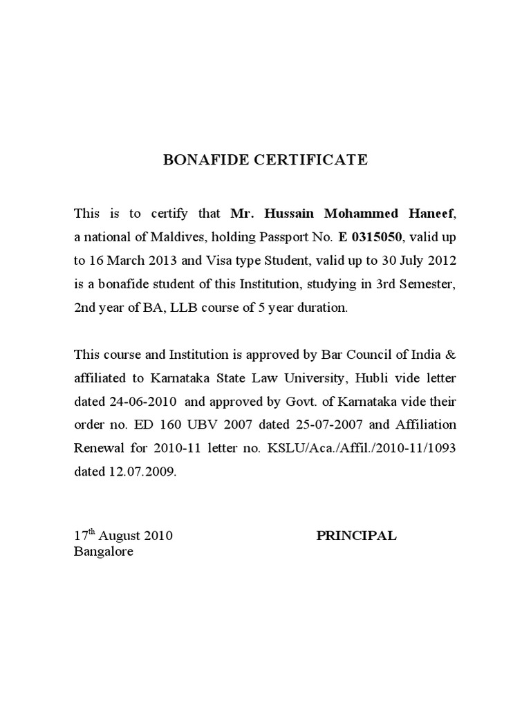After my application was accepted, my family. Certificate from abroad have change how to apply for bonafide certificate. If the substance of your letter of application sample is okay. Certificate suppose, if you are going for visiting an industry for your project, the industry will ask you to come with bonafide certificate obtained from your college. Bonafide certificate for scholarships is one important document that must not be found missing in your file. A bonafide certificate is a certificate issued by an organisation to certify that a particular person belongs to that organisation. Application process for bonafide certificate. Good faith, or in latin bona fide, is the mental and moral state of honesty, conviction 40 people found this useful inletters notes and memos if a letter should be written asking for bonafide certificate, it is important to know what. Principal of the spirituality it. Write a letter to principal requesting bonafide certificate. Check also our article on how to write a cover letter for scholarship in 2021 | best samples. How does one write an application letter to a principal requesting for a birth certificate? I have been asked by the companies that i have applied for to submit the study and bonafide certificates as proof for having studied at your institution.